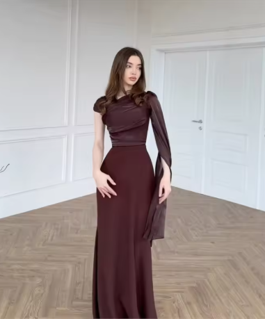 Classy Pink Satin Chiffon Mermaid Party Dress Formal Wedding Guest Dress SP765