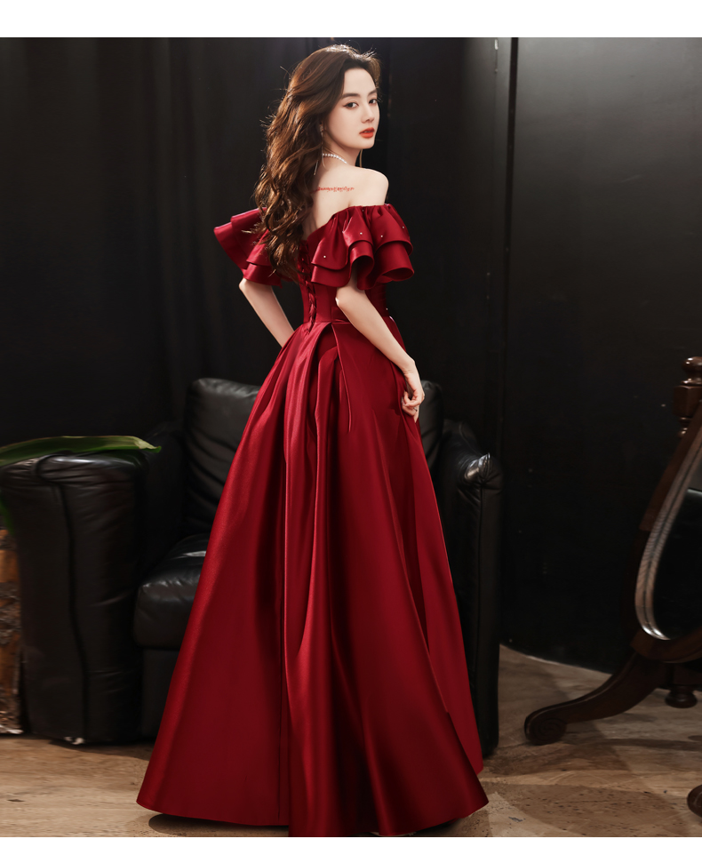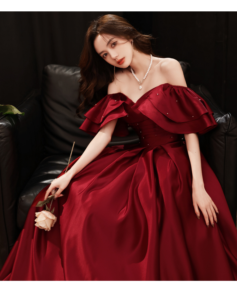 Dark Red Satin New Style Off Shoulder Long Prom Dress, A-line Long Formal Dress Y1427