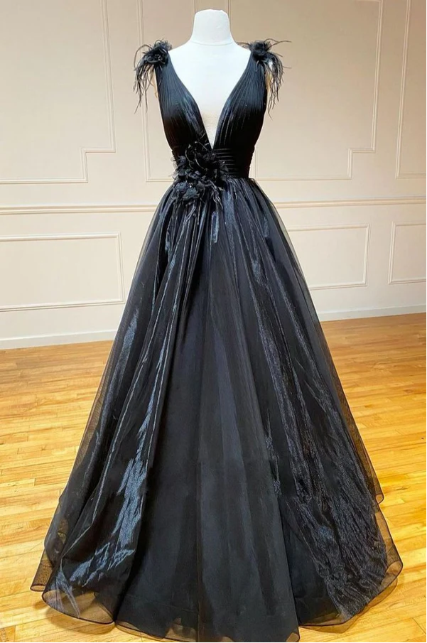 Deep V Neck Long Prom Dress Balck Charming Prom Dress Y16