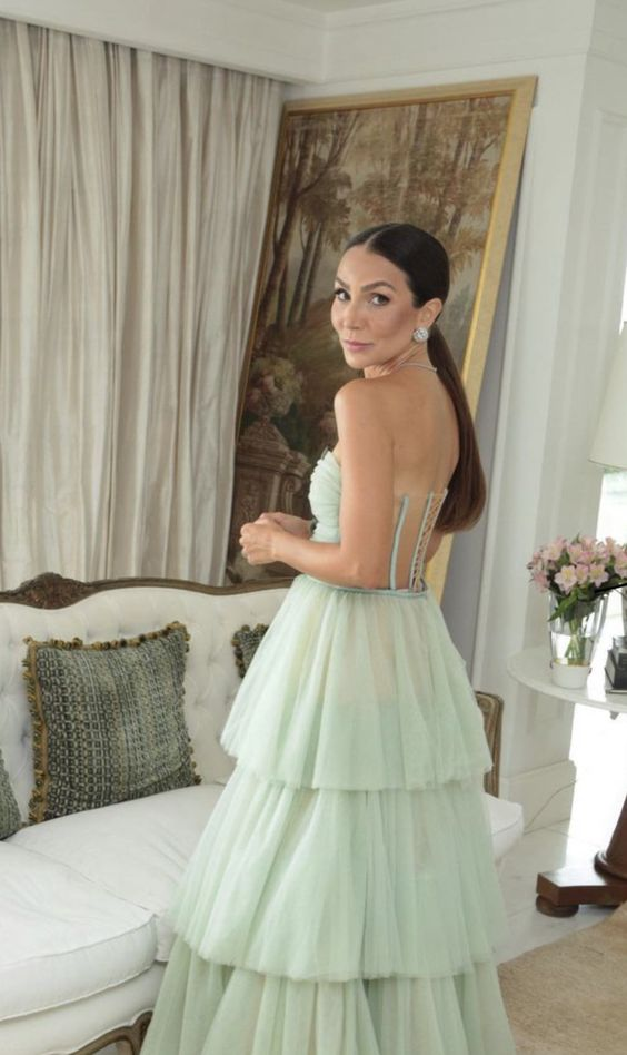 Elegant A-line Tulle Tiered Prom Dress Y6787
