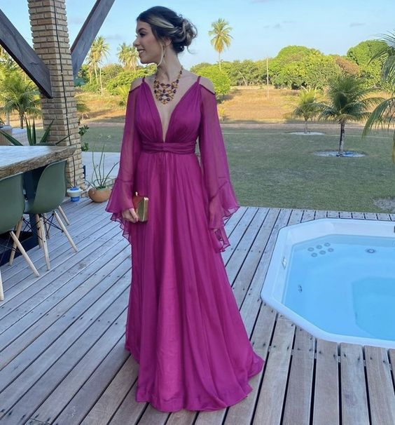 Elegant A-line V Neck Floor Length Prom Dresses Y5816