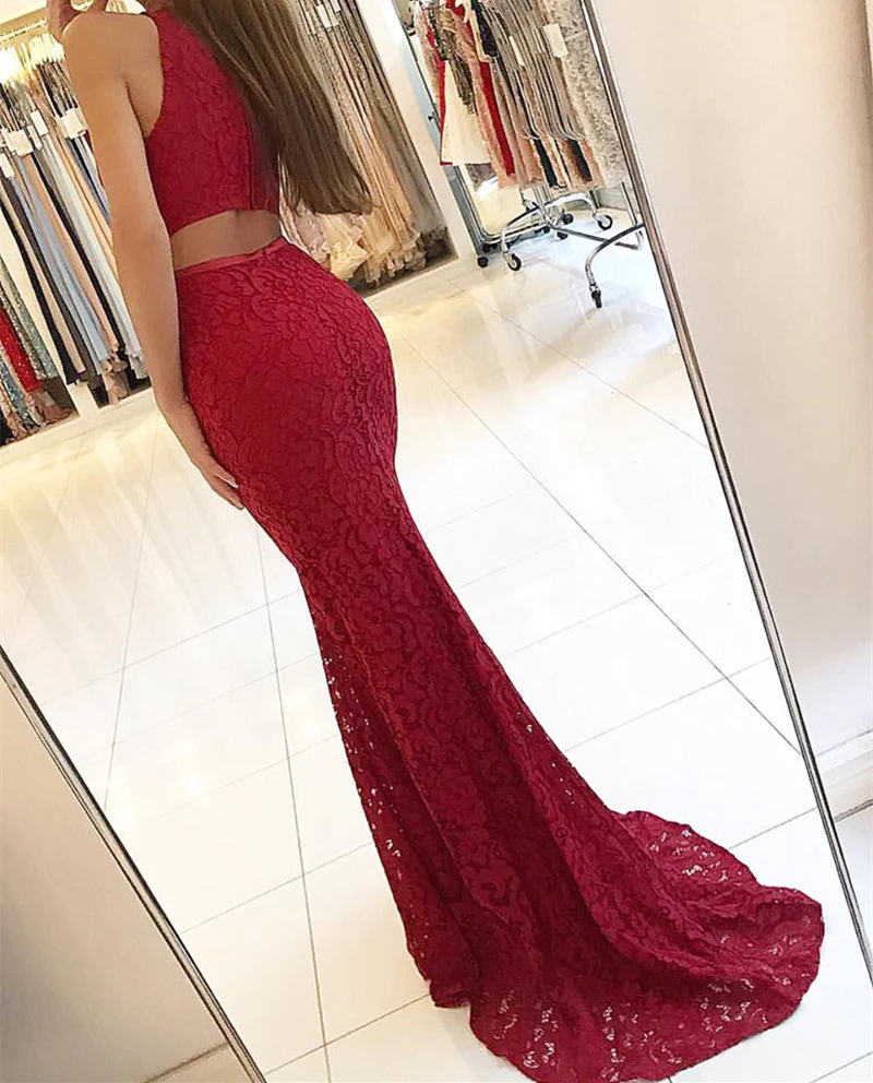 Elegant Burgundy Mermaid Lace Evening Dresses Y771