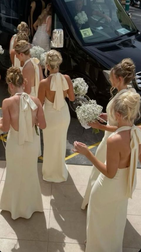 Elegant Halter Yellow Satin Mermaid Backless Bridesmaid Dress Long Wedding Guest Dress SP704