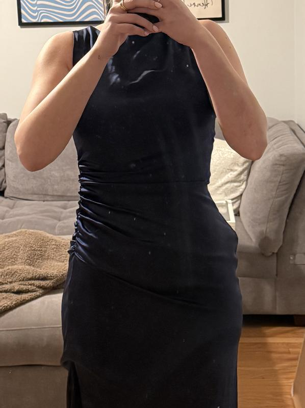 In love with this dress! Material is soft, flattering, thick! True to size and is the picture of elegance!