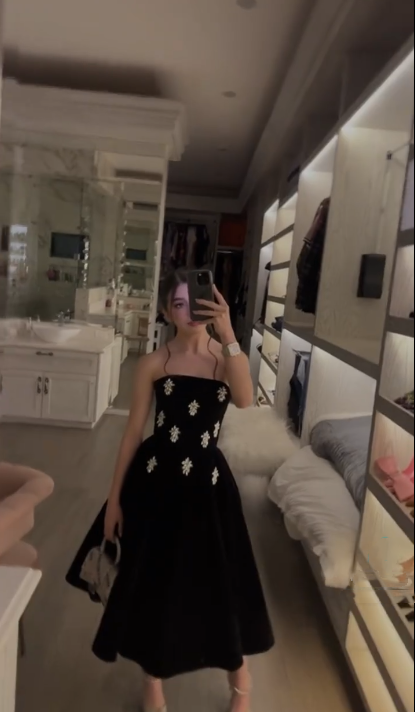 Elegant Strapless Black Velvet Beaded A Line Birthday Outfits Long Evening Gown SP1012