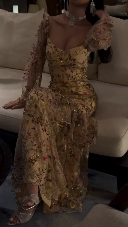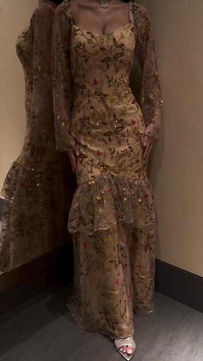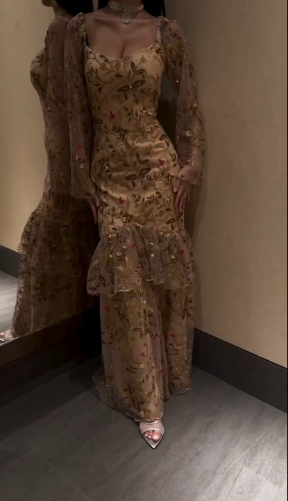 Elegant Tulle Sequin Beaded Mermaid Layered Long Evening Dress Birthday Prom Gown SP1195
