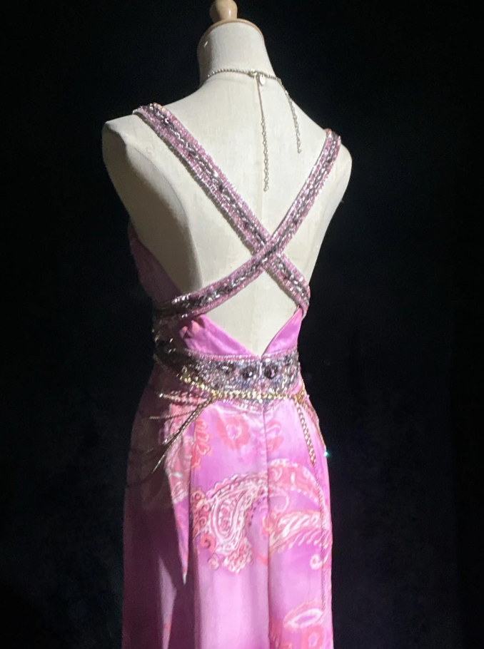 Glamorous Pink Spaghetti Straps Chiffon Floral Beaded Mermaid Evening Dress Long Party Dress SP1816