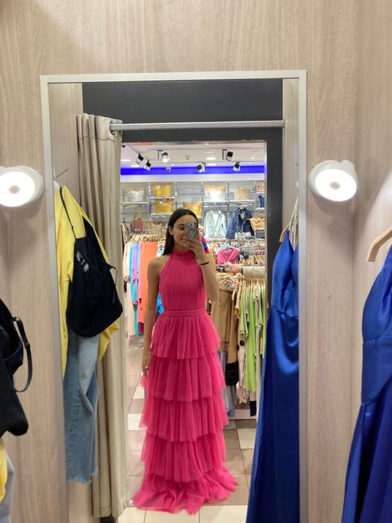 Halter Tulle Long Prom Dress,Elegant Formal Gown Y1994