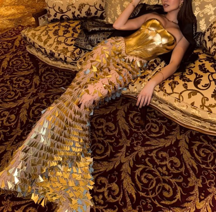 Luxurious Gold Strapless Sequins Prom Dress Sheath Long Evening Gown Y7959