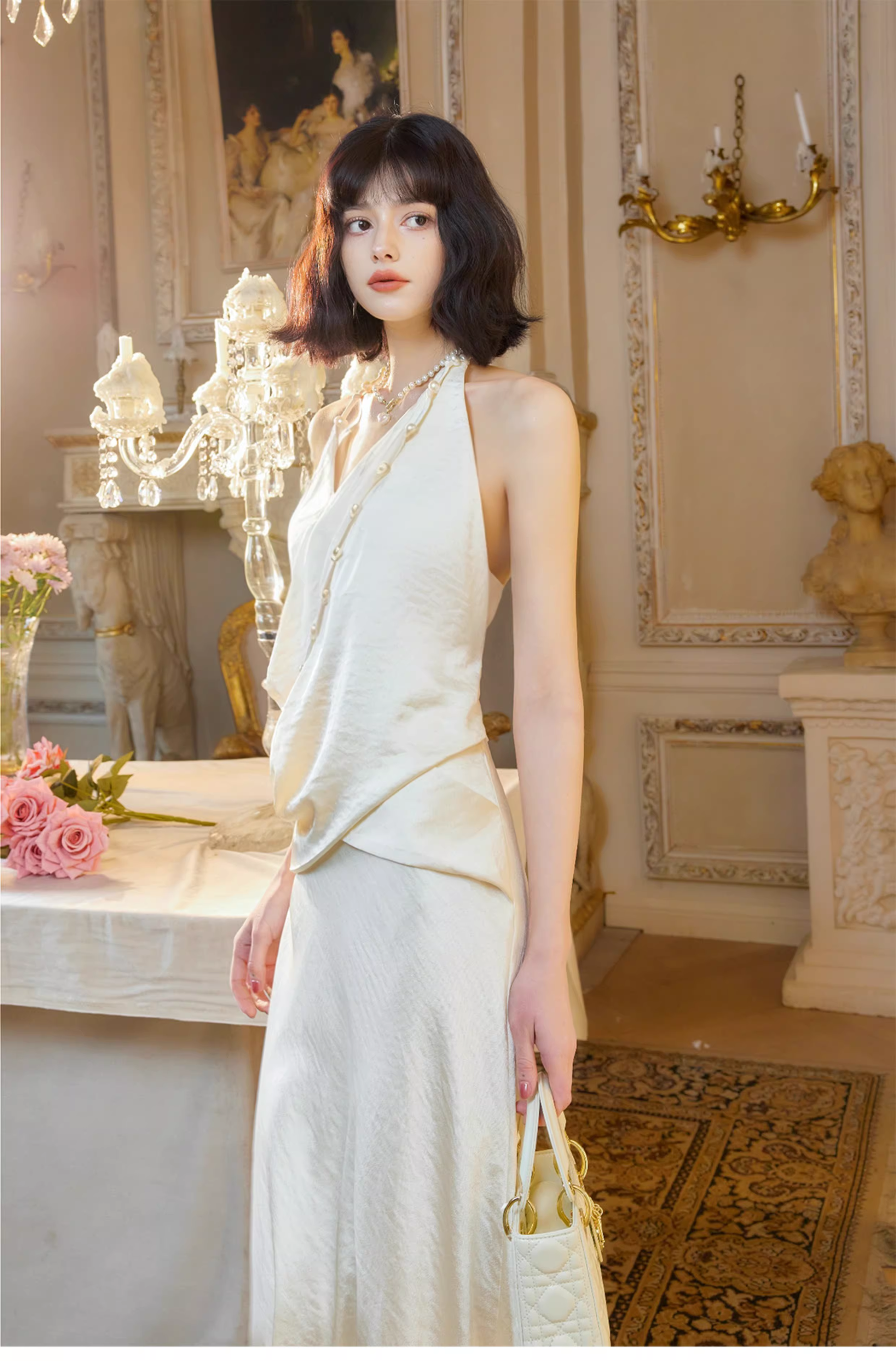 Stylish Halter V Neck Light Champagne Satin Mermaid Prom Dress Formal Birthday Party Gown SP1997