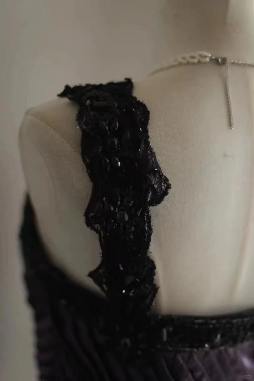 Vintage One Shoulder Purple Satin Beaded Mermaid Party Dress Long Birthday Prom Gown SP752
