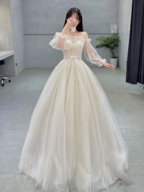 A-line Tulle Prom Dress with Long Sleeves Princess Dress Y3037