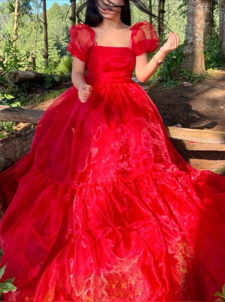 Beautiful Red Square Tulle Long Party Gown Formal Evening Dress SP36
