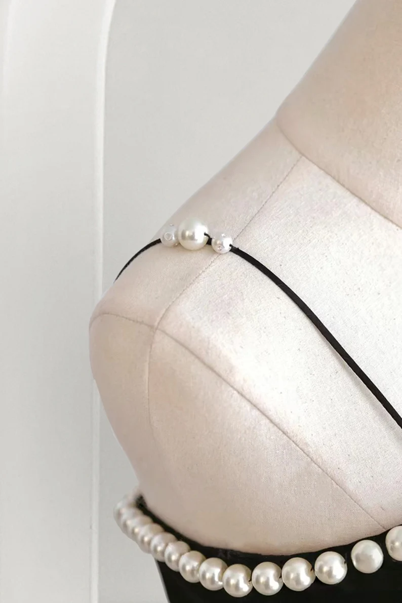 Black Velvet Pearls Elegant Dress, Spaghetti Straps Lace-up Dress, Prom Dress,Y2503