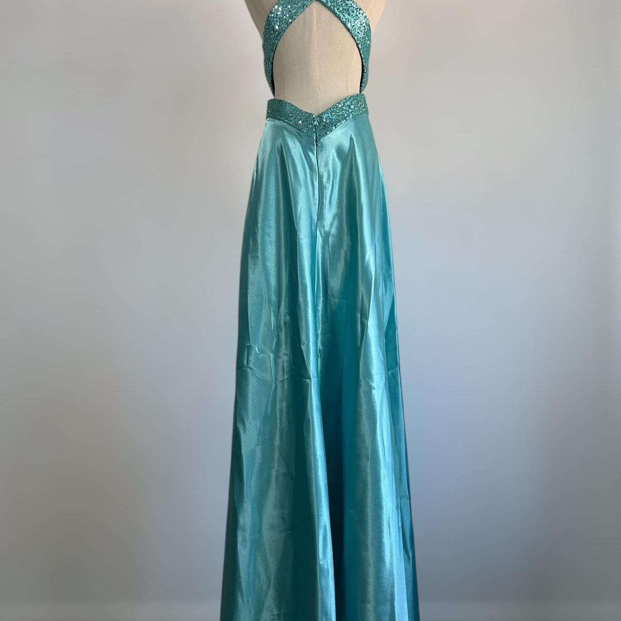 Blue V Neck Satin Sequin Formal Prom Dress Backless Evening Dress Y8548