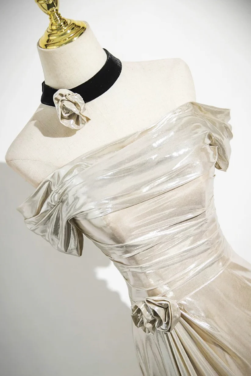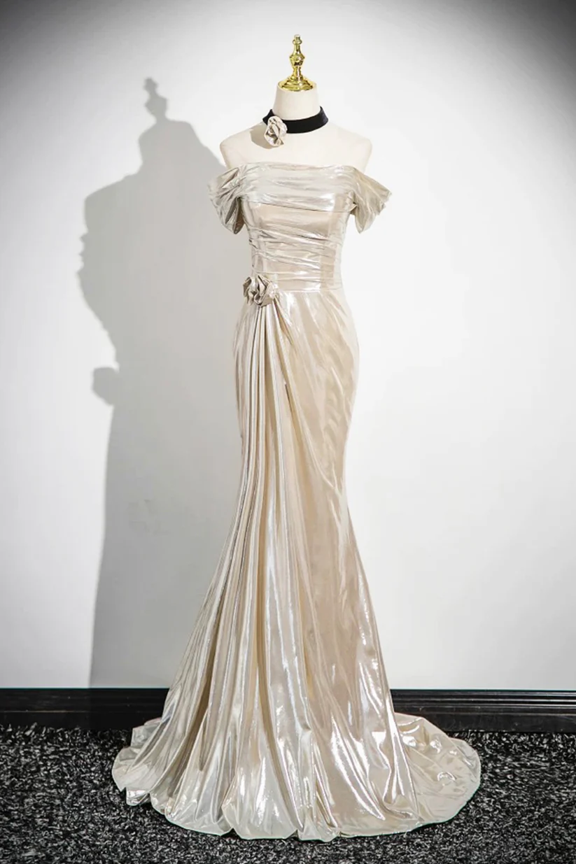 Charming Champagne Off The Shoulder Satin Prom Dress,Mermaid Evening Gown Y8202