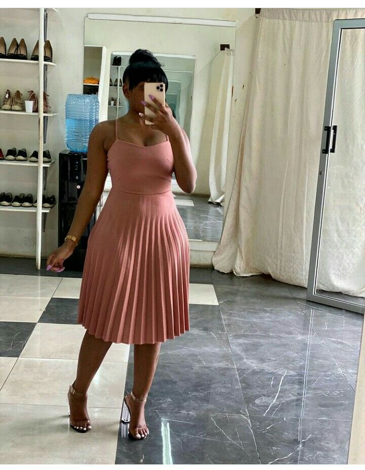 Chic A-line Pleated Midi-length Prom Dress,Trendy Party Dress Y4873