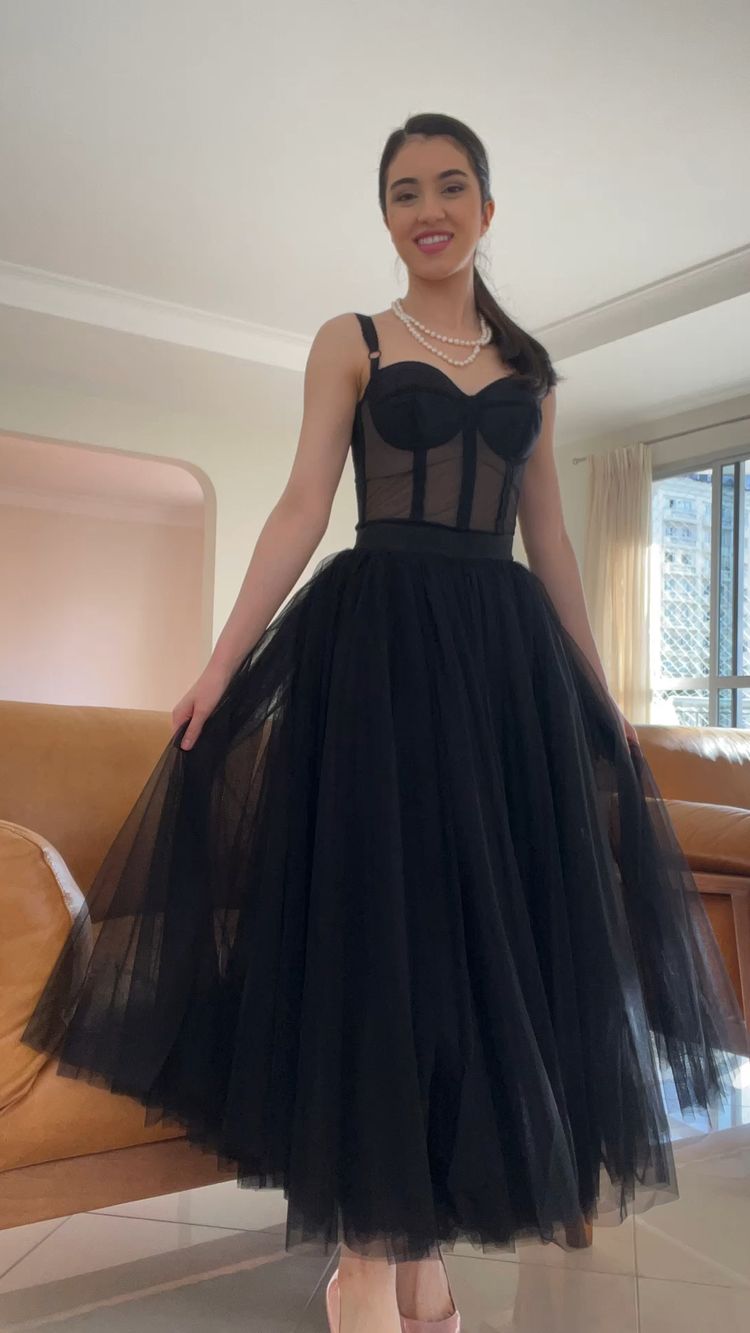 Classy A-line Straps Black Tulle Prom Dress,Black Formal Gown Y1070