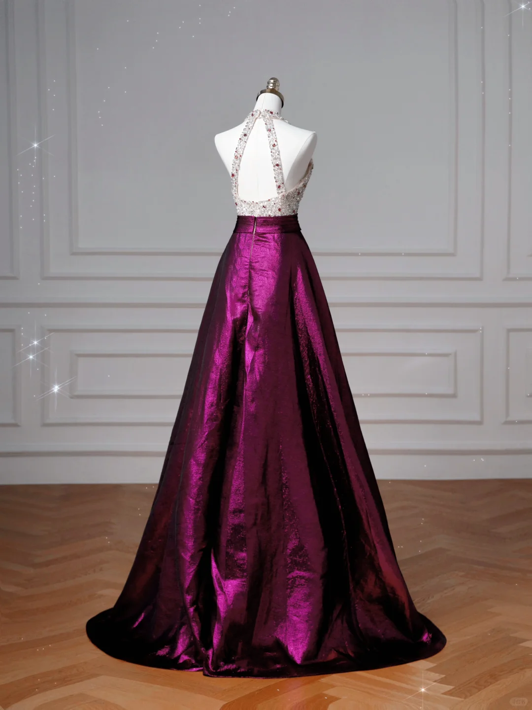 Classy Halter Purple Beaded Satin A Line Prom Dress Long Evening Dress Y8609