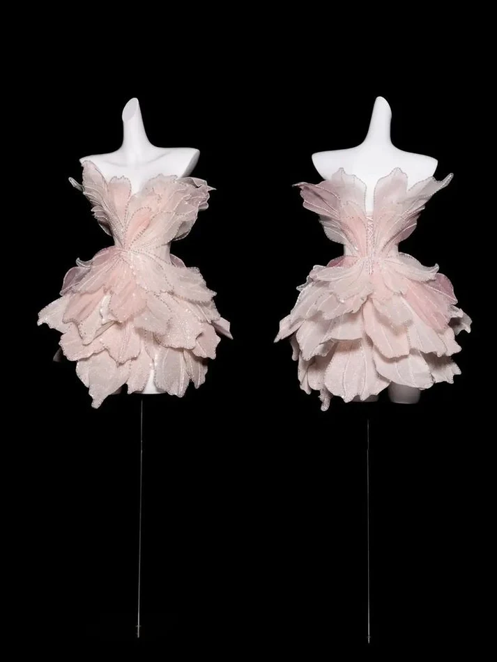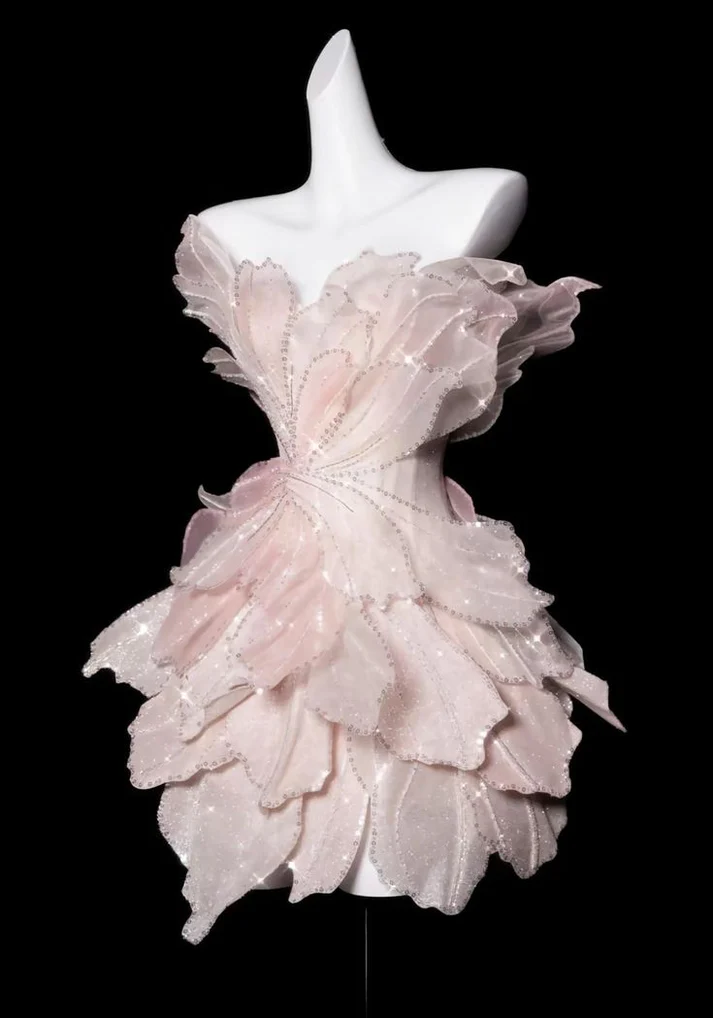Classy Pink Strapless Organza Sequin Beaded Homecoming Dress Birthday Outfits Y9313