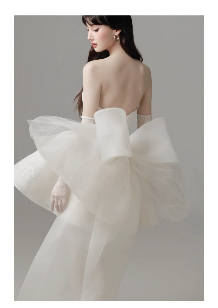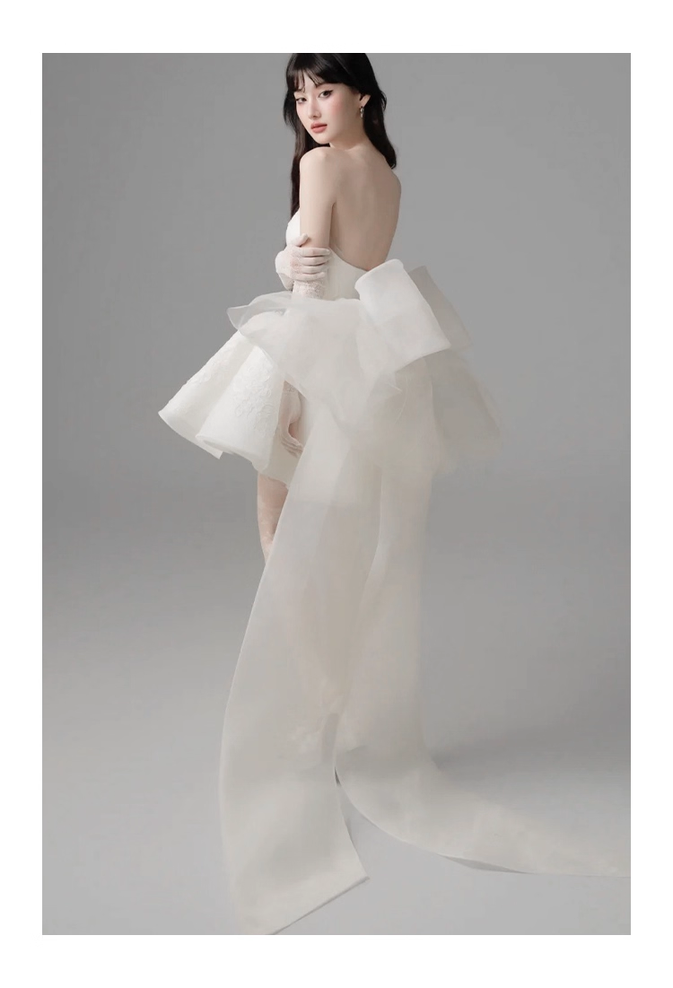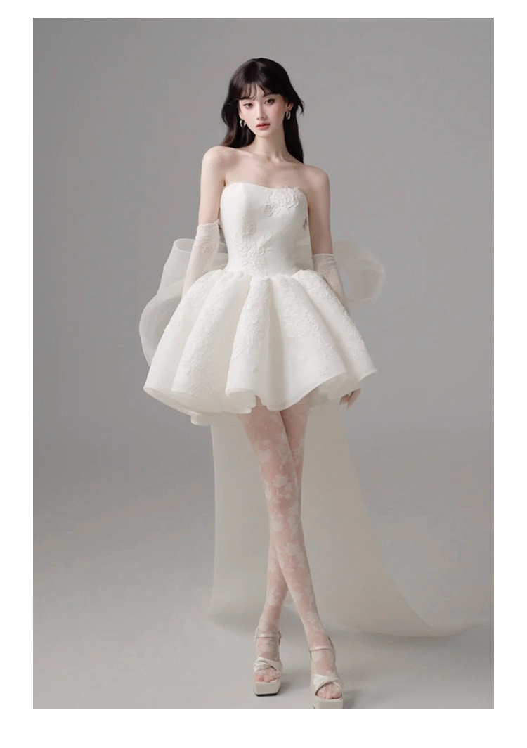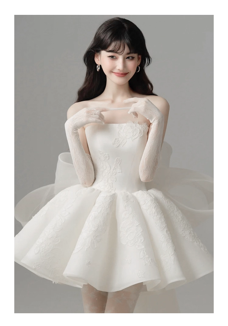 Classy Strapless Organza Appliques White A Line Short Homecoming Dress Formal Birthday Outfits With Bow Y9563