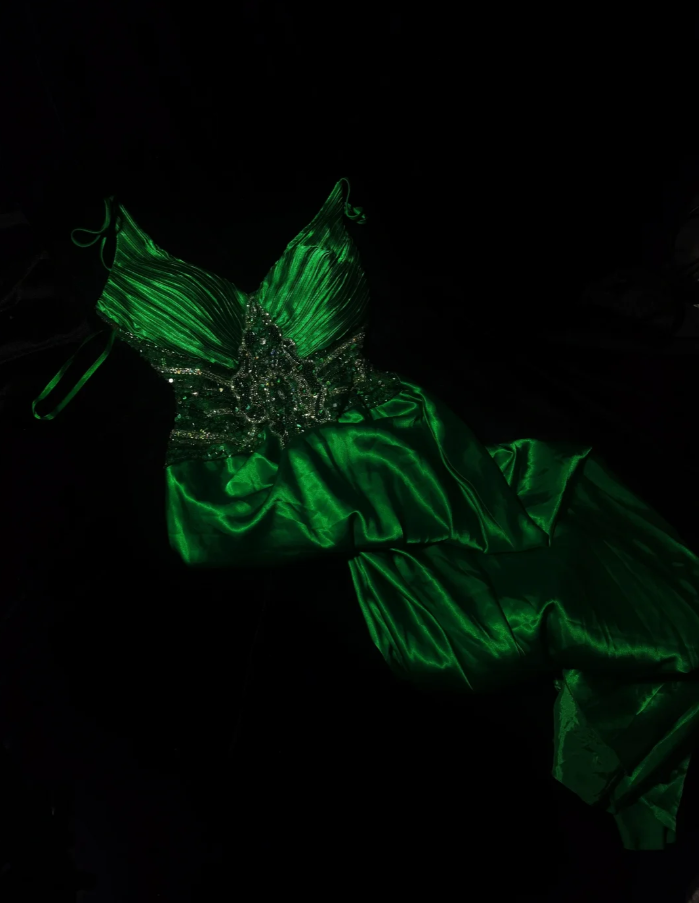 Classy V Neck Spaghetti Straps Green Satin Beaded Mermaid Birthday Prom Dress Evening Gown SP568