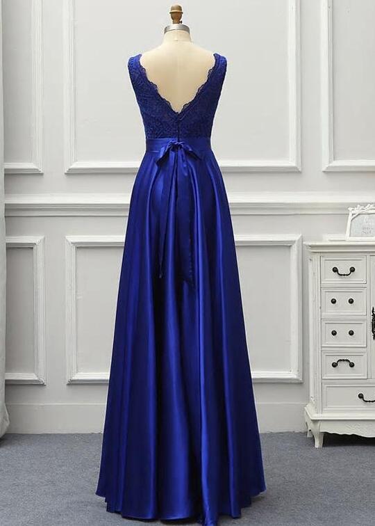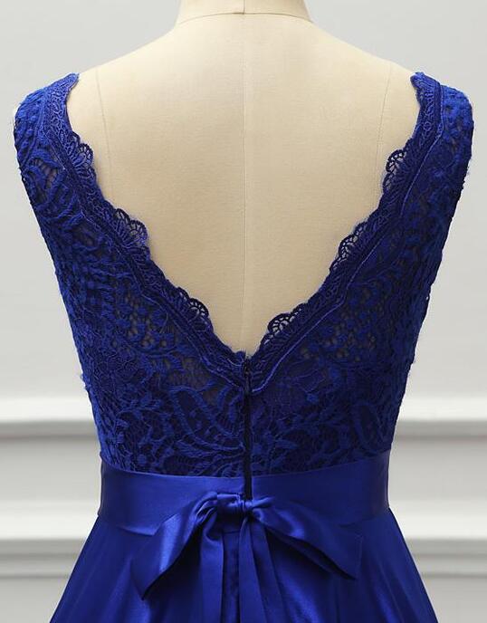Custom Made Royal Blue Lace A Line Long Prom Dresses Cheap Prom Party Gowns ,Sexy Prom Gowns Y1194