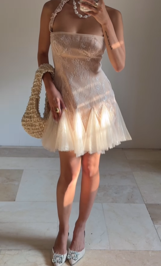 Cute Halter Lace Tulle Homecoming Short Prom Dress Y8502