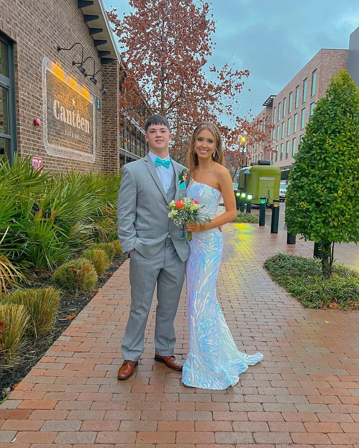 Cute Mermaid One Shoulder Sequin Prom Dresses Chic Evening Dress Y1895