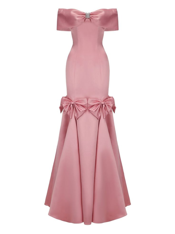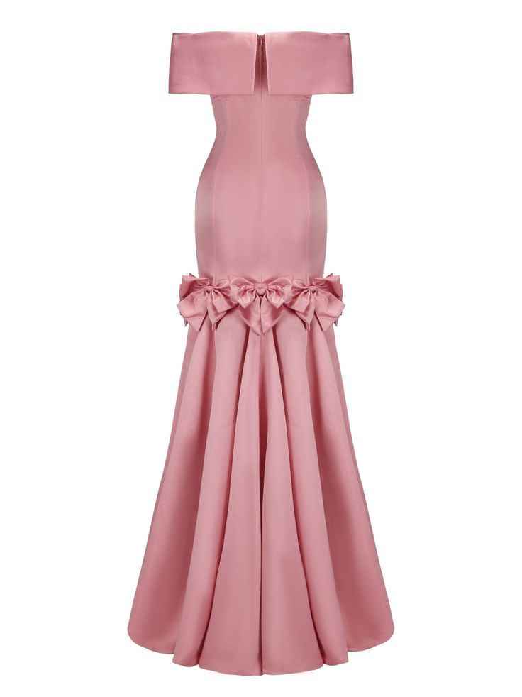 Cute Off The Shoulder Pink Satin Party Dress,Mermaid Birthday Evening Dress With Bow Y8727