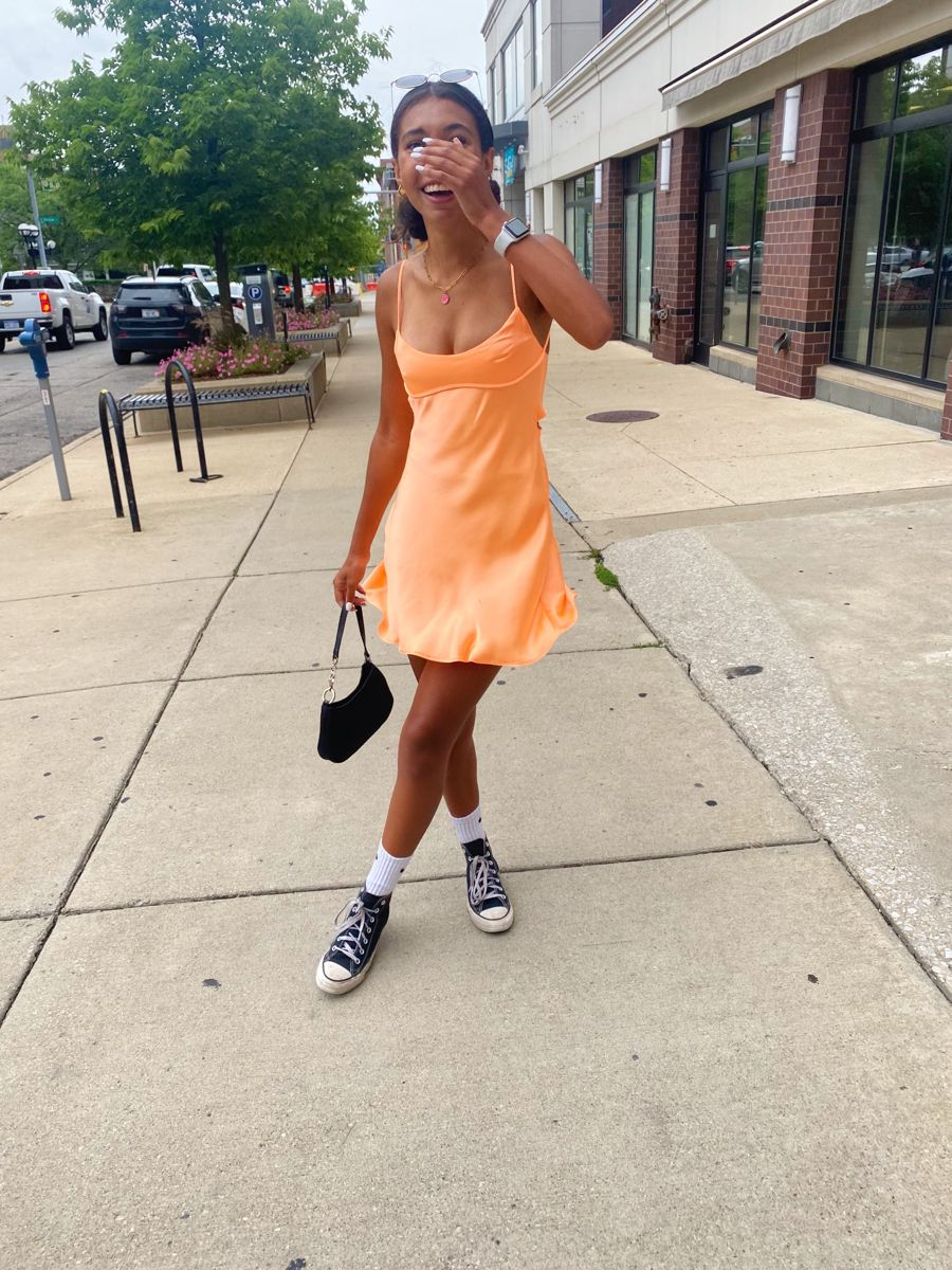 Cute Orange Homecoming Dress Back To School Dress Y2833
