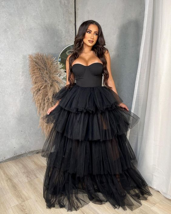 Elegant A-Line Strapless Long Black Prom Dress Y4894