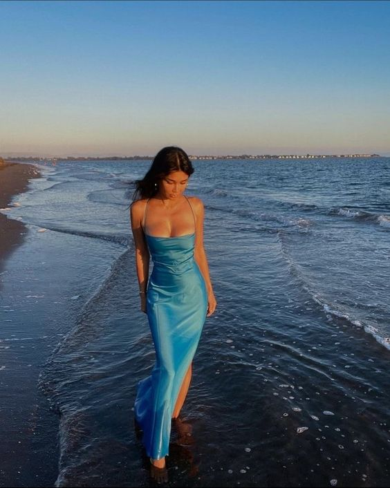 Elegant Blue Spaghetti Straps Prom Dress With Split Y7299
