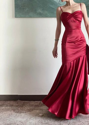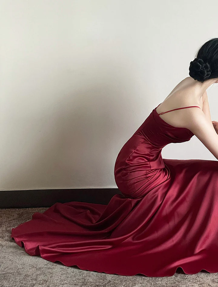 Elegant Burgundy Spaghetti Straps Mermaid Prom Dress,Trendy Dress Y4797
