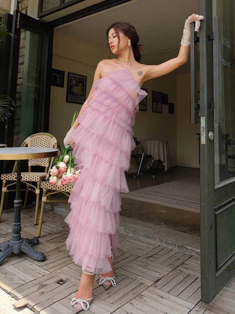 Elegant Halter Layered Tulle Prom Dress Y2737