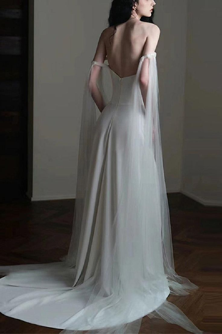 Elegant Off The Shoulder White Satin Wedding Dress,Long Evening Dress Y8739
