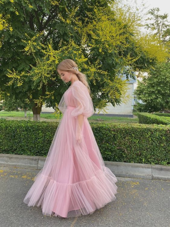 Elegant Pink A-line Tulle Prom Dress,Pink Fairy Dress Y6318