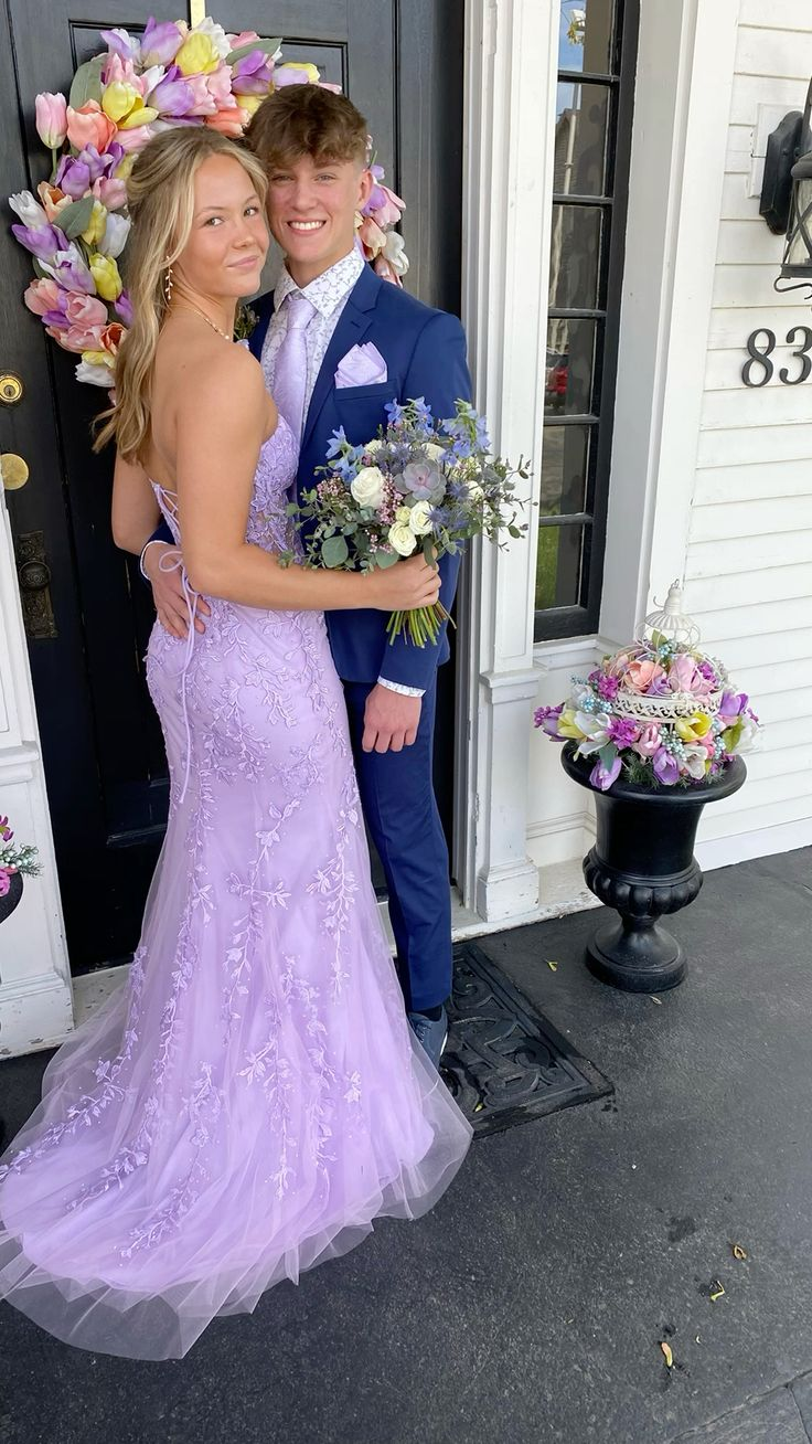 Elegant Purple Lace Tulle Mermaid Prom Dress,Purple Graduation Dress Y5310