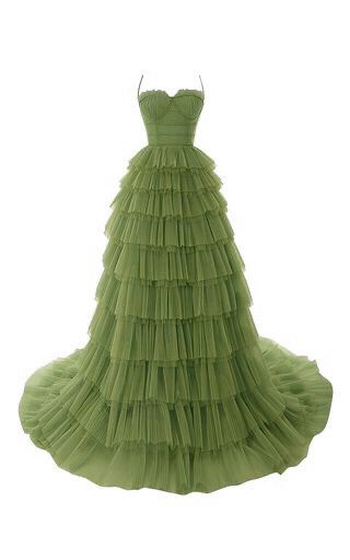 Elegant Spaghetti Straps Tulle Prom Dress,Olive Green Evening Gown Y1244