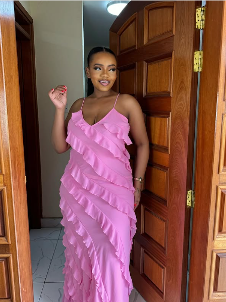 Elegant Straps Sheath Chiffon Formal Prom Dress Pink Ruffles Long Party Dress Y7561