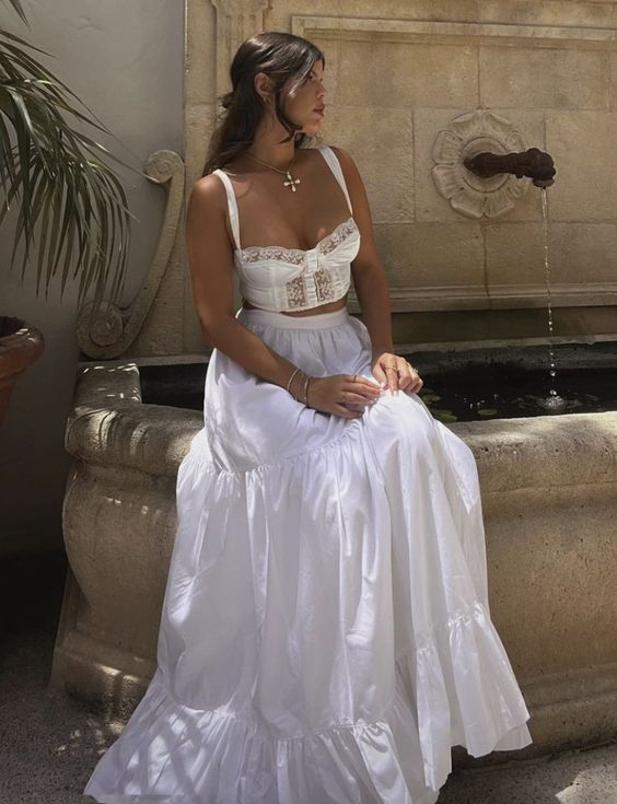 Elegant Two Piece White Prom Dress,White Formal Gown Y7038