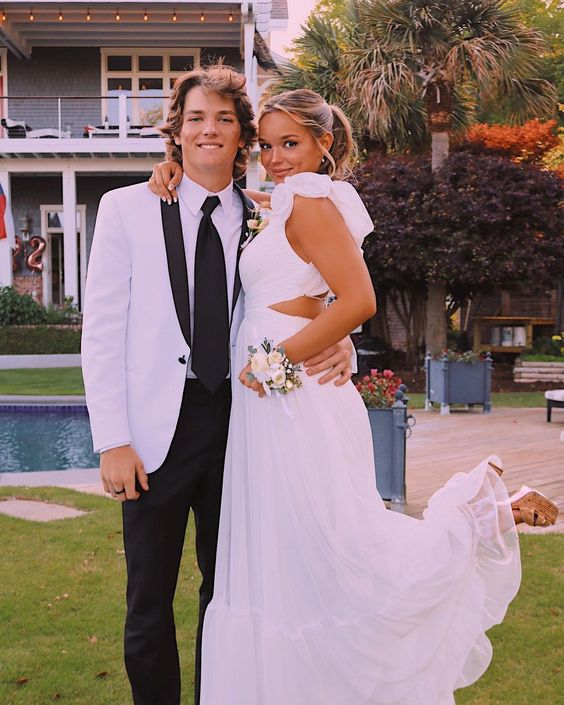 Elegant White A-line Prom Dress,White Formal Gown Y5206