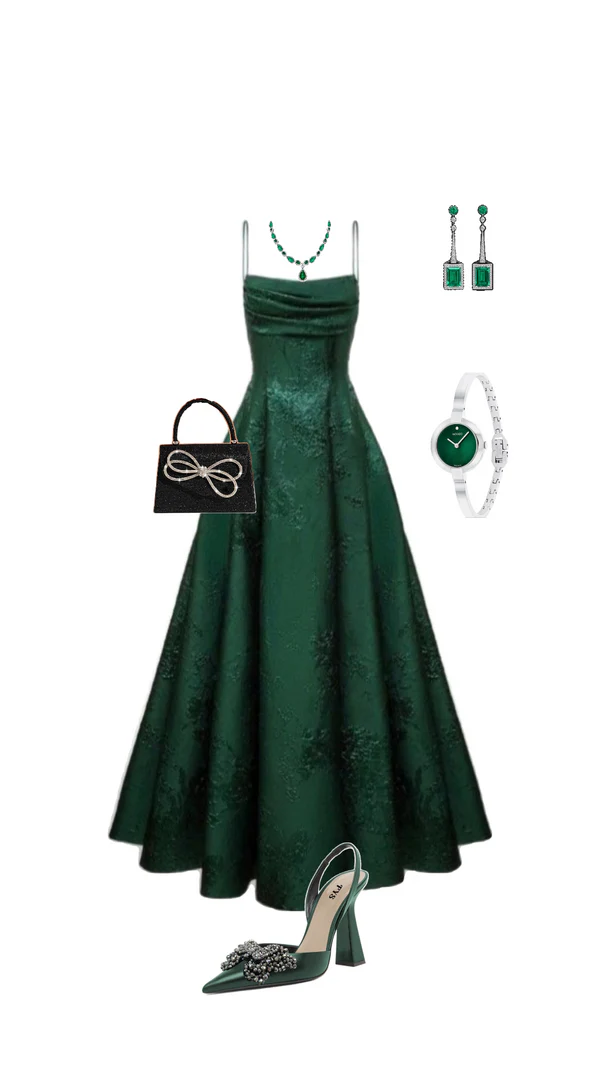 Emerald Green A-line Spaghetti Straps Prom Dress,Chic Evening Dress Y1799