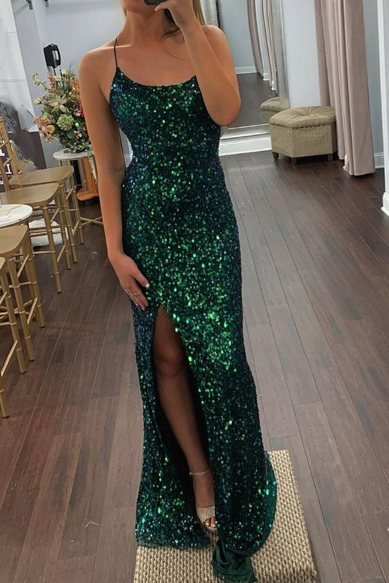 Emerald Green Sequins Mermaid Long Prom Dress Y6317