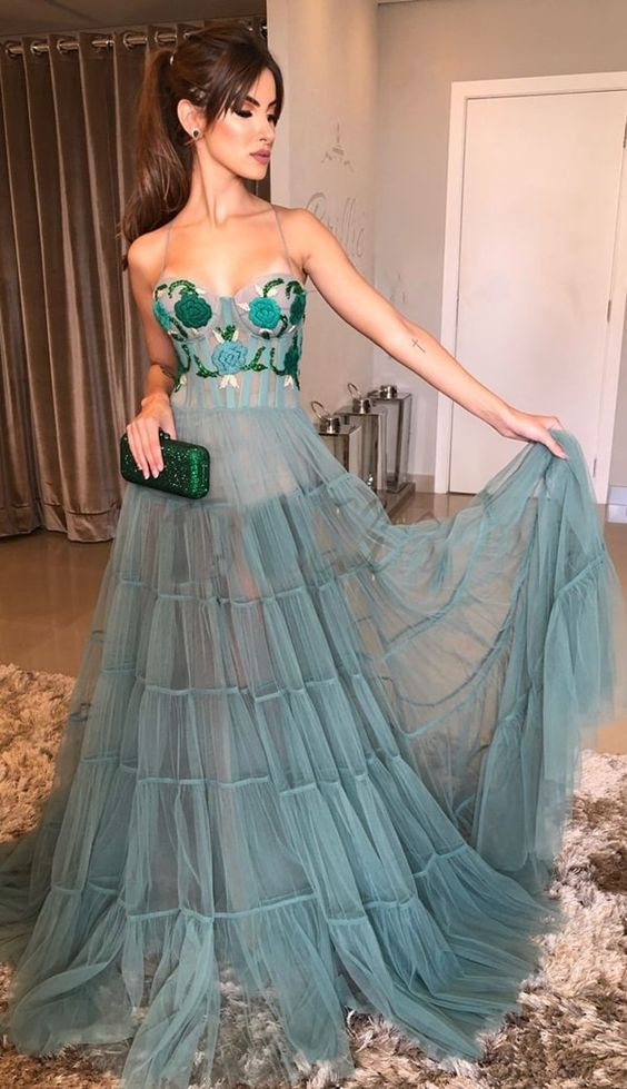 Fashion A-line Tulle Prom Dresses Long Sexy Prom Dress Y5375