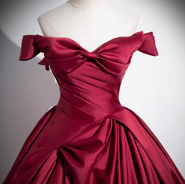 Fashion Burgundy Satin Pleats Prom Dress A Line Elegant Ball Gown Y7661