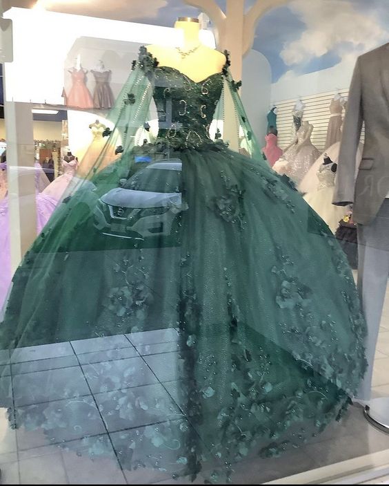 Floral off the shoulder emerald green quinceanera dress new arrival sweet 16 dress ball gown Y1226