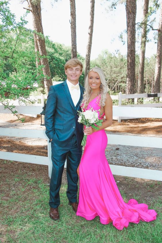 Generous Hot Pink Mermaid Prom Dress With Side Split Y964