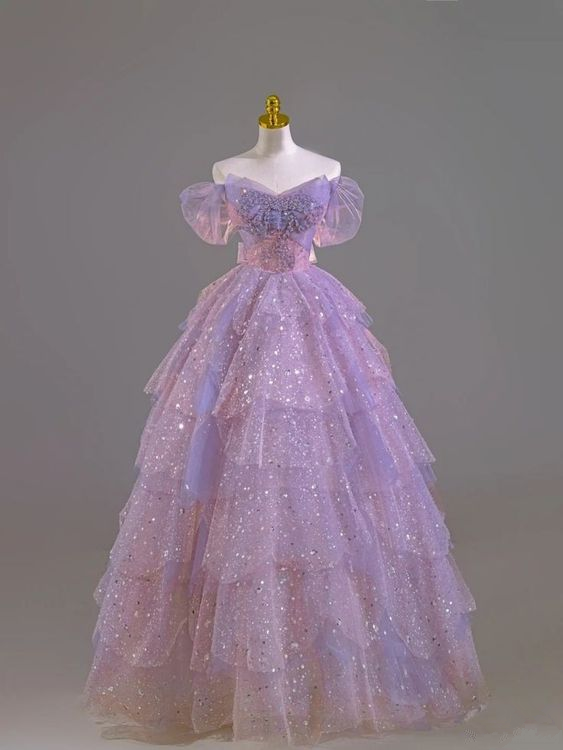 Glamorous Purple A-line Multi-layered Tulle Prom Dress,18th Birthday Dress Y5867