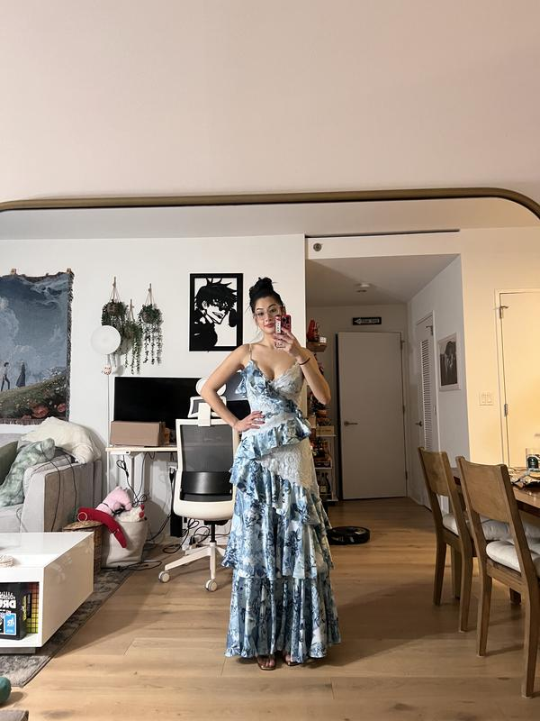 Love this dress. Pretty blue and super comfortable.A little tight across my chest but it’s still comfortable!